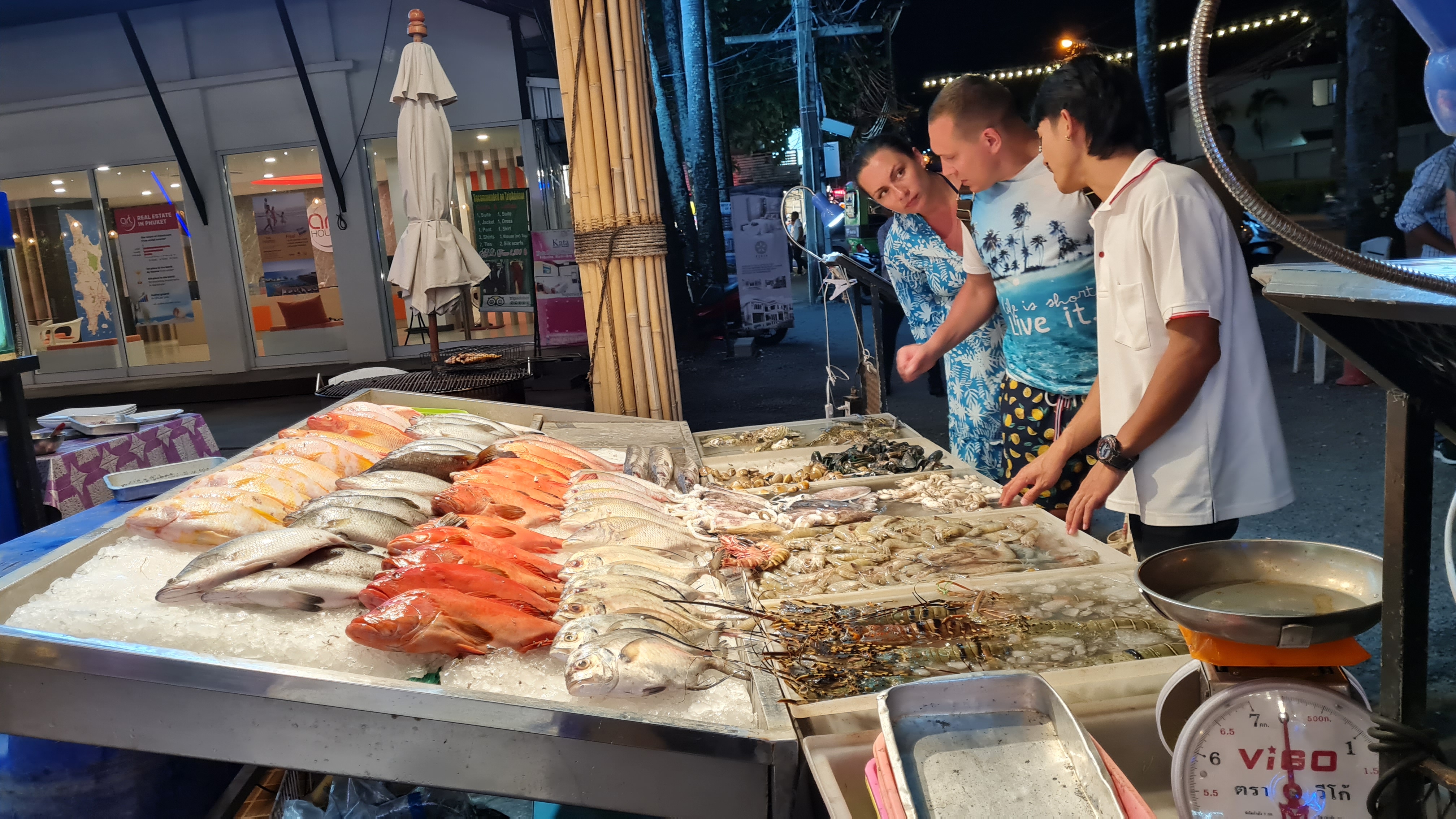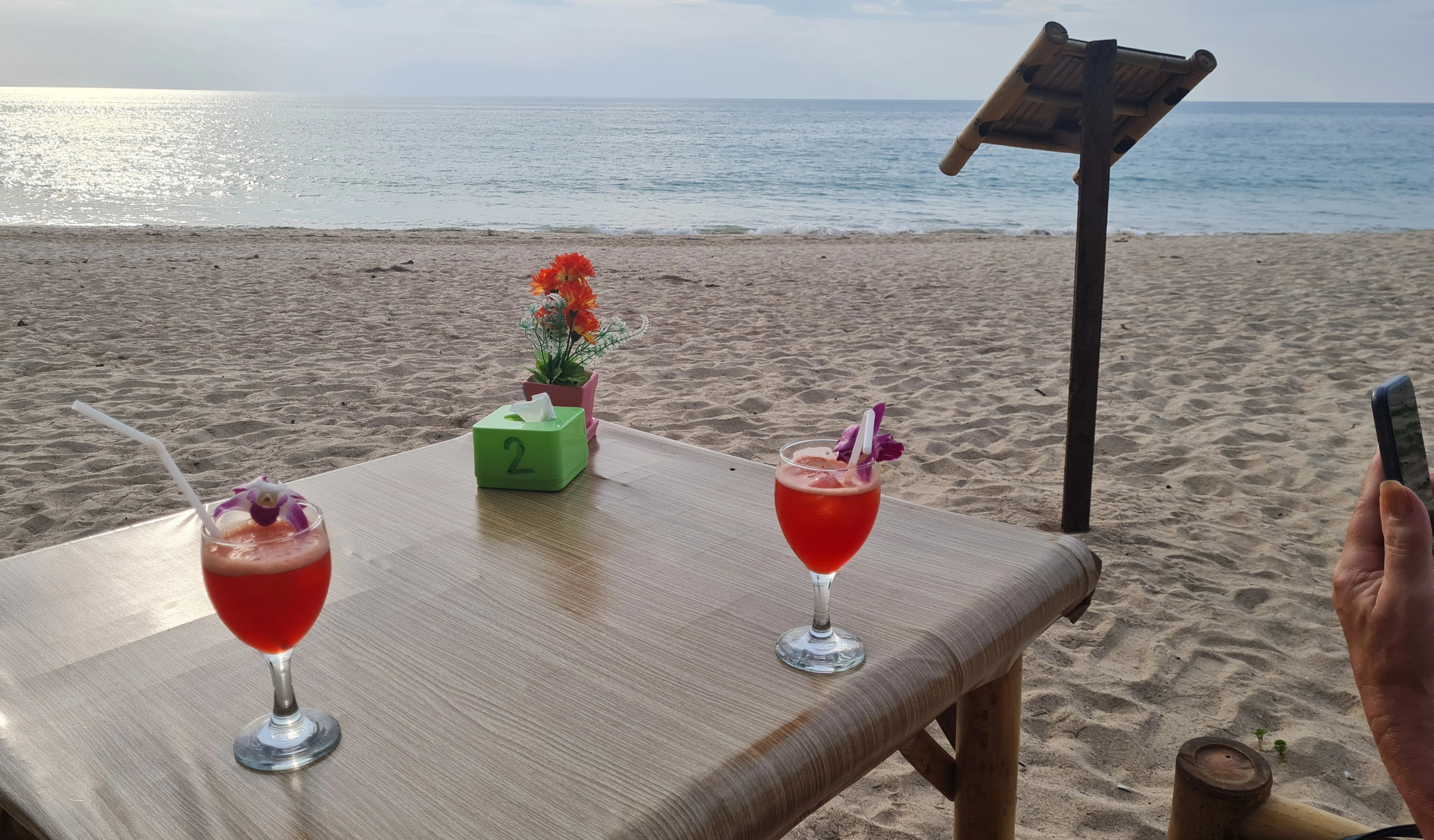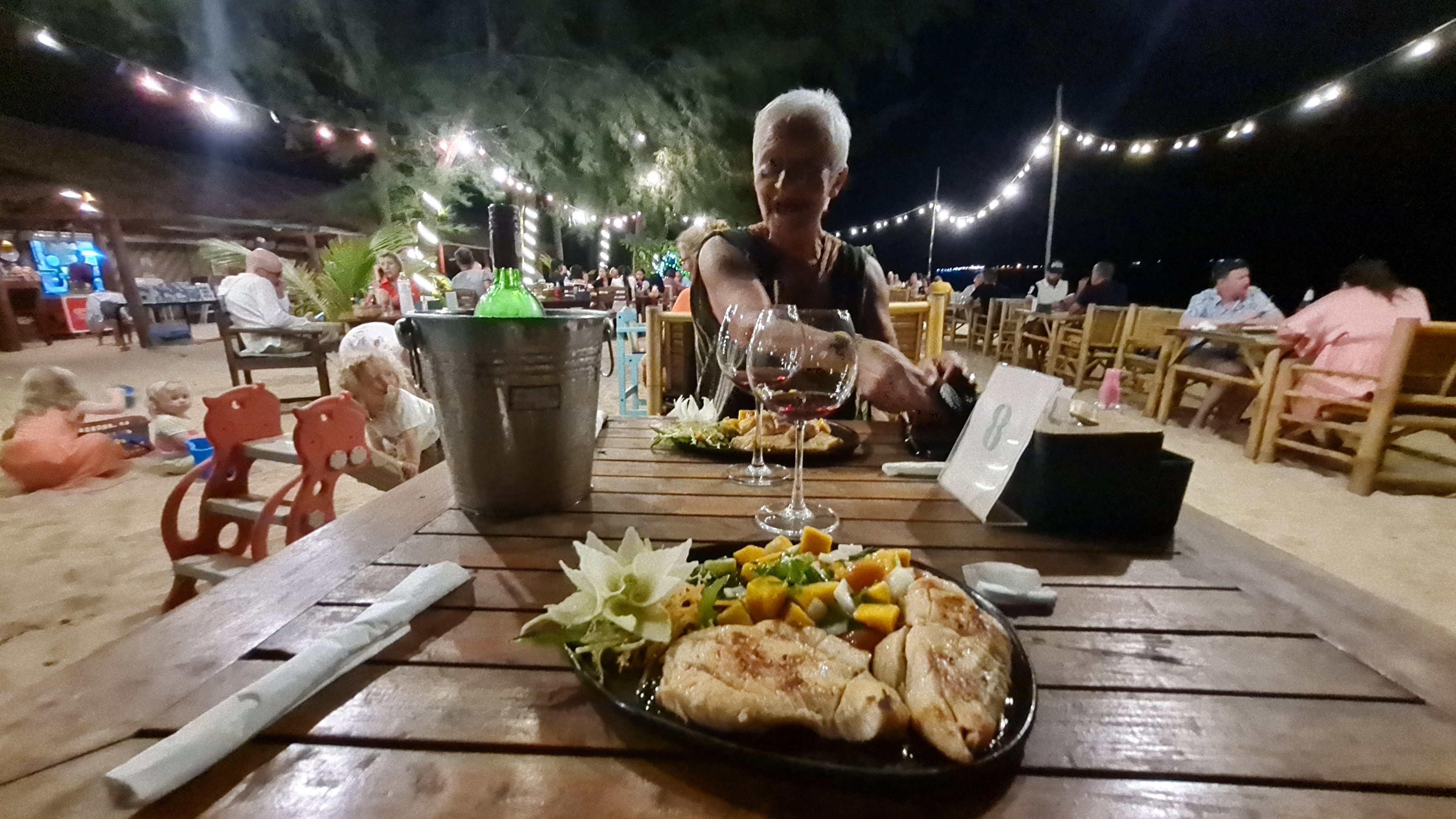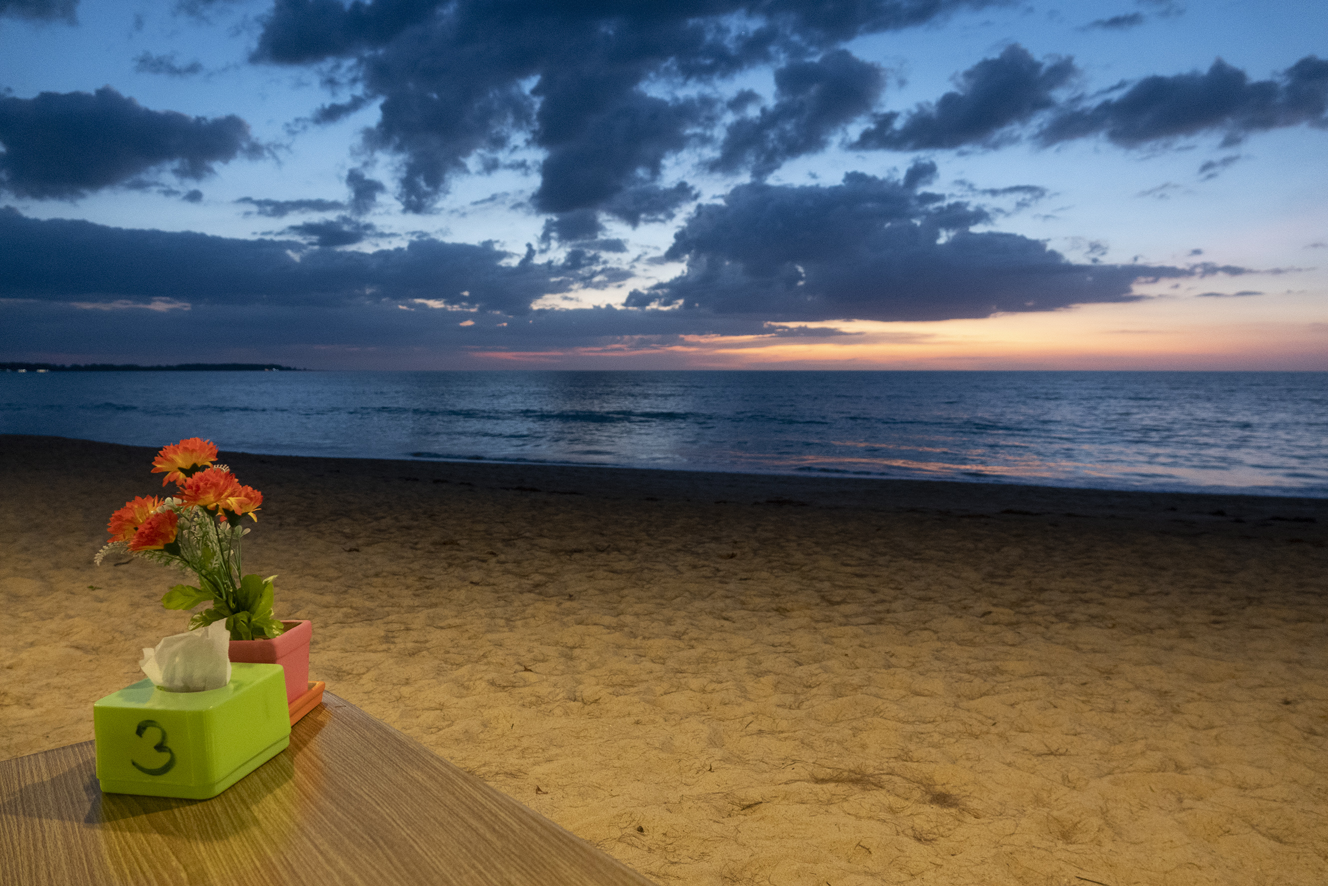 Sista fem dagarna tillbringade vi på Outrigger Khao Lak Beach cirka femton minuter med bil från centrala Khao Lak, ett fantastisk ställe alldeles nära havet helt utan kommers , ett fridfullt paradis där man bara kunde vara. Långa sandstränder glest befolkade inbjöd till långa barfota vandringar, På promenadavstånd låg små strandrestauranger där man kunde äta middag under bar himmel. Att få sitta på första parkett och se solen gå ner i havet var magiskt