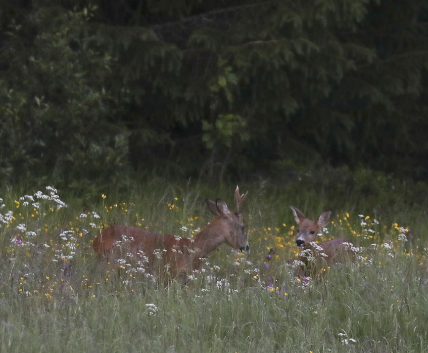 Midsommarhelgen är över och sommaren är i full blom! Vackert och samtidigt vemodigt för nu går vi mot mörkare tider igen. Ändå har vi nattljus åtminstone en månad till . Mitten på maj fram till midsommar är den som bästa tiden och jag önskar att man kunde man stanna klockan ett slag för att verkligen hinna njuta av naturens pånyttfödelse och de ljusa sommarnätterna som man inte borde sova bort! Sitter ofta och redigerar bilder framför mitt fönster som vätter mot naturen och ibland så händer det att någon kommer förbi … Ha de gott i sommar! Kramar!